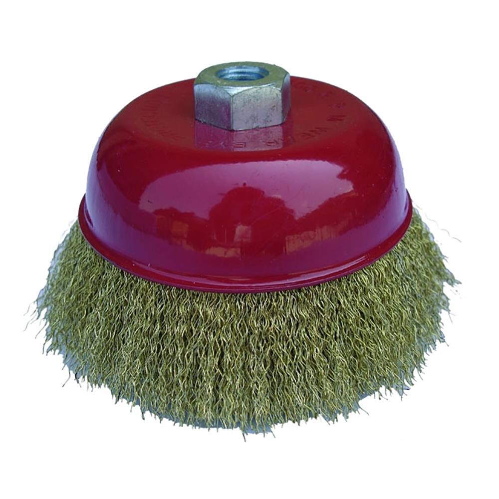 Šalčasta krožna žična krtača izdelana iz visokokvalitetnih jeklenih in proti vibracijam odpornih žic za kotni brusilnik z navojem M14 ter na vrtalnike. Idealna za učinkovito obdelavo večjih površin z močnejšo umazanijo. Žična ščetka je primerna za predobdelavo kovinskih delov pred lakiranjem, čiščenje in odstranjevanje barve, rje, žlindre, vodnega kamna in raznih nakopičenj ter raztrganin.