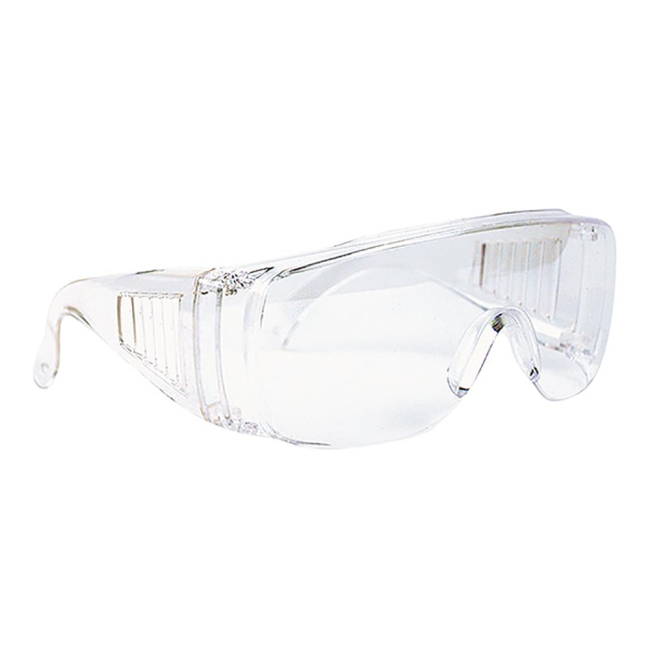 Zaščitna prozorna očala iz polikarbonatnega stekla, z odprtinami ob strani za zračenje. CE certifikat EN166.