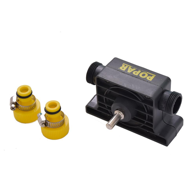 Pretočna črpalka za vrtalnik ima najlonsko ohišje in dodatke iz polipropena. Največja moč pretoka je 1800 l/h. Črpalko lahko uporabljate za praznjene korit, akvarijev, bazenov ter za druge pretoke. Sesalna višina je do 3 m ter potisna do 13 m. Črpalka ni primerna za uporabo s hlapljivimi in vnetljivimi tekočinami kot je bencin ali topila. Črpalke se nikoli ne sme uporabljati na suho.