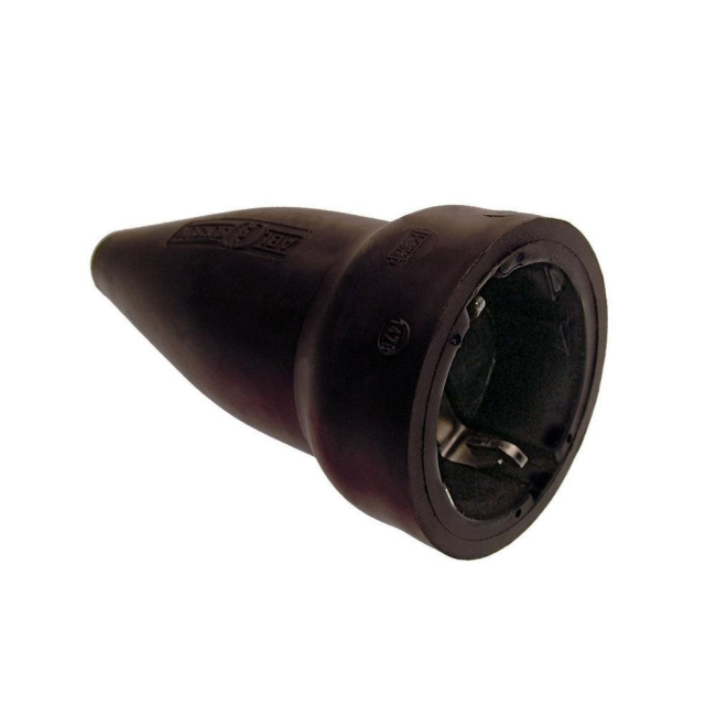 Gumi vtičnica dvo-kontaktna izdelana iz robustne trdne gume. Max.priklop kabla 2,5 mm2, z zaščito IP44.