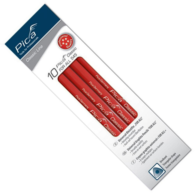 Univerzalni svinčnik, trikoten, trdote 2B, omogoča pisanje na različne materiale. Primeren za označevanje na vseh sijočih površinah, kot so kovina, steklo, plastika, ploščice, keramika, laminat... Linije so poudarjene tudi na mokrih površinah. Označbe se pobrišejo z vlažno krpo.