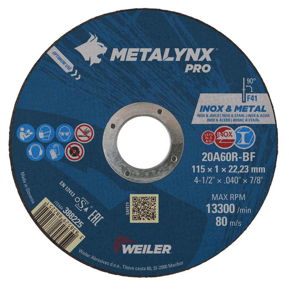 Rezalne plošče Metalynx PRO Inox & Metal zagotavljajo dolgo življenjsko dobo pri delu z nerjavečim jeklom in trdimi vrstami jekla. Formula brez onesnaževal zagotavlja brezskrbno rešitev za uporabo na nerjavnem jeklu. Vrhunska zrna iz aluminijevega oksida zagotavljajo gladko rezanje in dosledno zmogljivost. Daljša življenjska doba plošče zmanjšuje število menjav in zagotavlja več rezov.