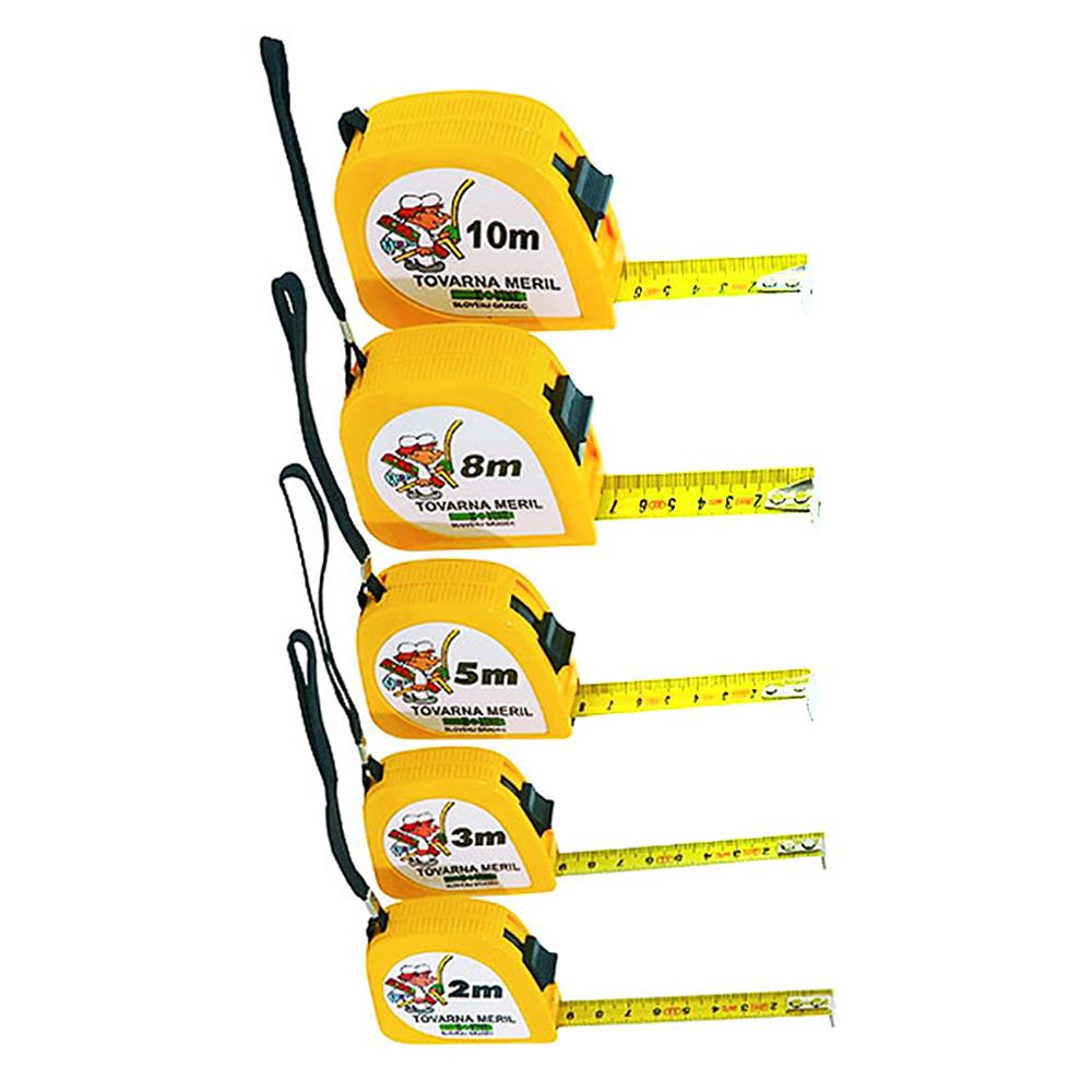 Ohišje metra je rumene barve in je narejeno iz kvalitetne ABS plastike, z zavoro merilnega traku. Na ohišje je pritrjena zaponka, ki uporabniku omogoča, da meter enostavno pospravi oz. zatakne za pas ali ob rob hlač. Merilni trak je rumene barve z mm skalo. Širina traku je 13 mm (pri 2 in 3 m metrih) ter 16 mm pri 5 metrskem metru. Meter spada v razred točnosti II.