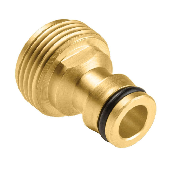 Priključek za vodno pipo z zunanjim navojem. Oblika priključka omogoča uporabo ključa za lažjo montažo.