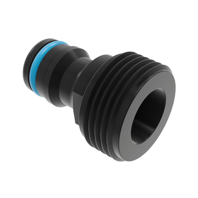 Priključek za vodno pipo z zunanjim navojem. Oblika priključka omogoča uporabo ključa za lažjo montažo.