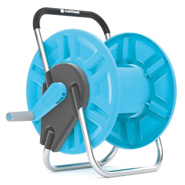 Kolut za cev primeren za prenos in skladiščenje cevi. Nastavek za cev preprečuje upogibanje in sukanje cevi med navijanjem ali odvijanjem. Aluminijasto ogrodje koluta je odporno na korozijo. Gumiran ročaj omogoča udoben oprijem tudi na mokri podlagi. Primeren za navitje 45 m cevi Ideal z nastavkom 1/2".
