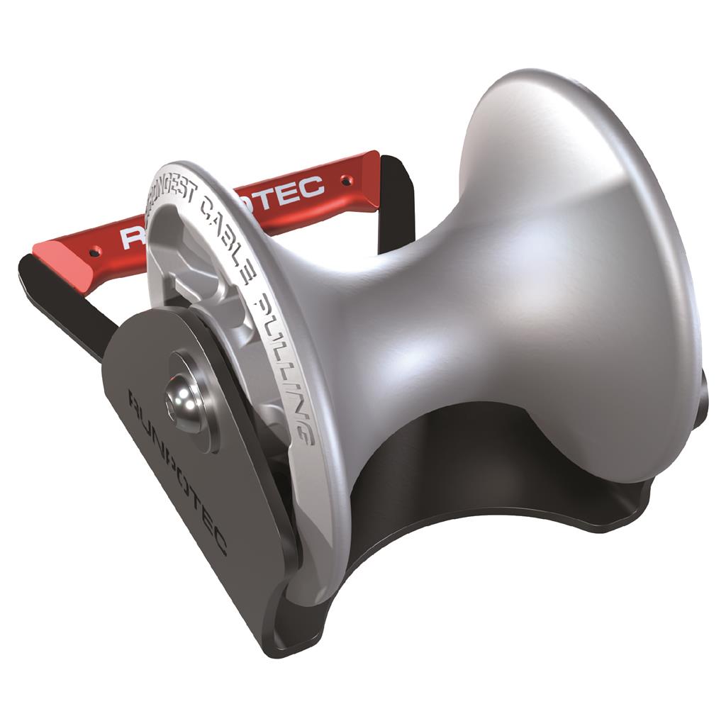Aluminijasti 90° kotni valj z vstavljenimi krogličnimi ležaji iz nerjavečega jekla je zasnovan za vleko kablov okoli vogalov z minimalnim uporom. Valj je možno pritrditi s trakom ali z vijaki. Maksimalen premer kabla je fi 100 mm. Nosilnost 4500 kg.